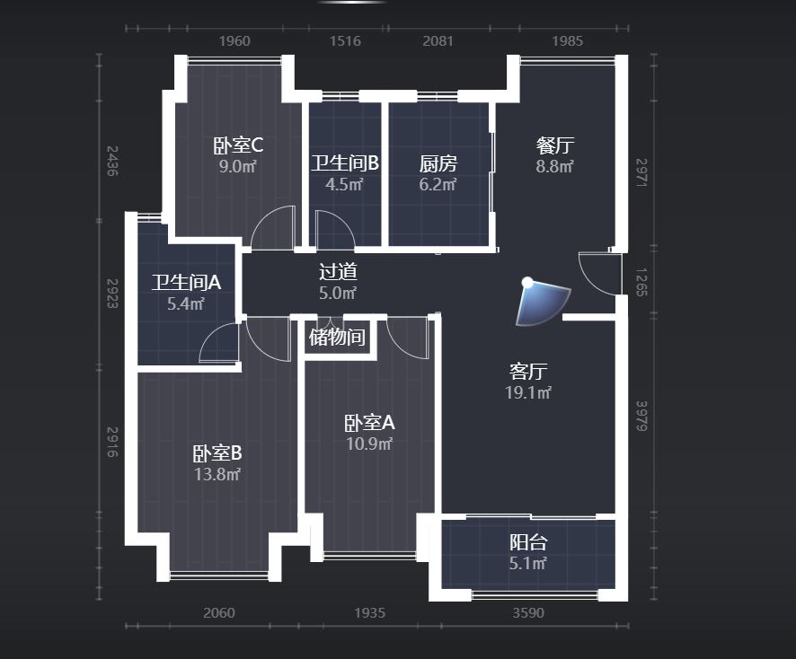 小区比较少的动静分离大三房。两房朝南,一房朝北,全部带飘窗。厨卫全明,光线通风好